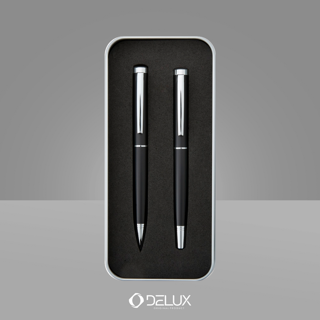 Eleve sua experiência de escrita com o Conjunto de Canetas DELUX. Com design sofisticado e acabamento premium, o kit contém duas canetas cuidadosamente acomodadas em uma caixa de metal luxuosa, perfeita para presentes ou uso pessoal. Seja para assinar contratos importantes, tomar notas ou presentear alguém especial, essas canetas garantem escrita suave, precisão e um toque de exclusividade.